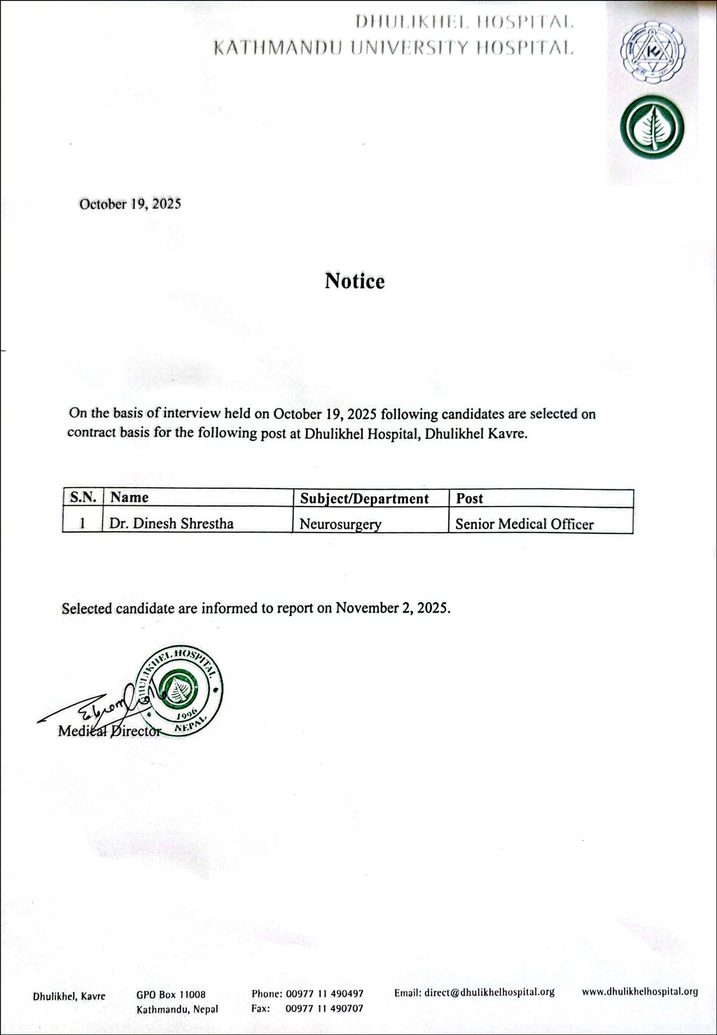 Vacancy Announcement For The Post Of Registrar In Various Departments