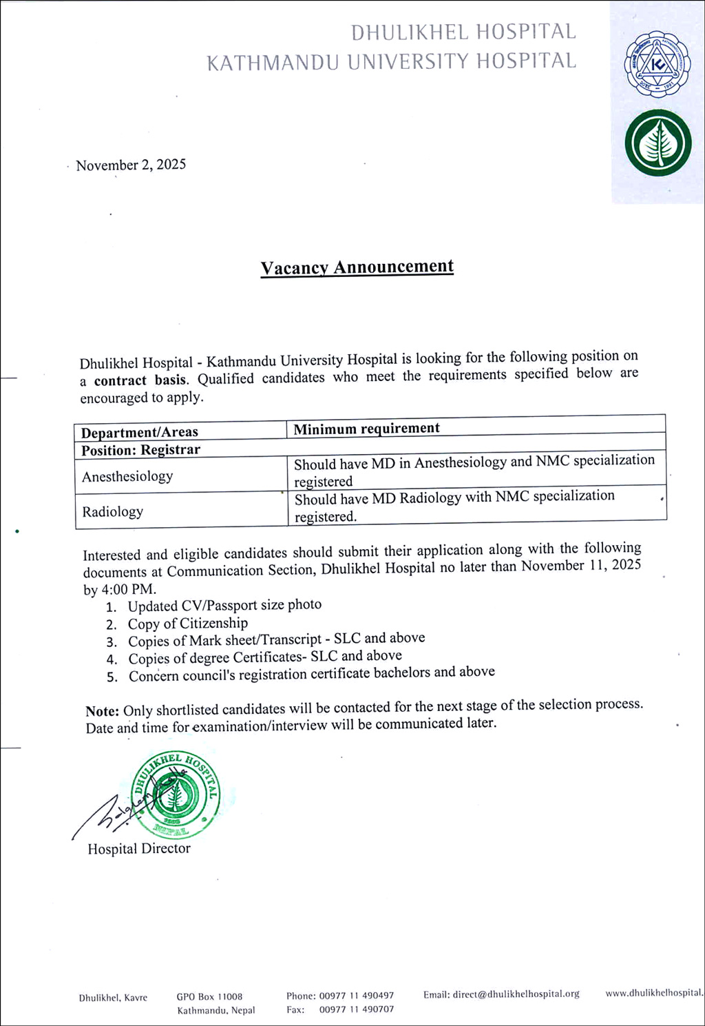 Vacancy Announcement For The Post Of Community Health Nurse (CHN)
