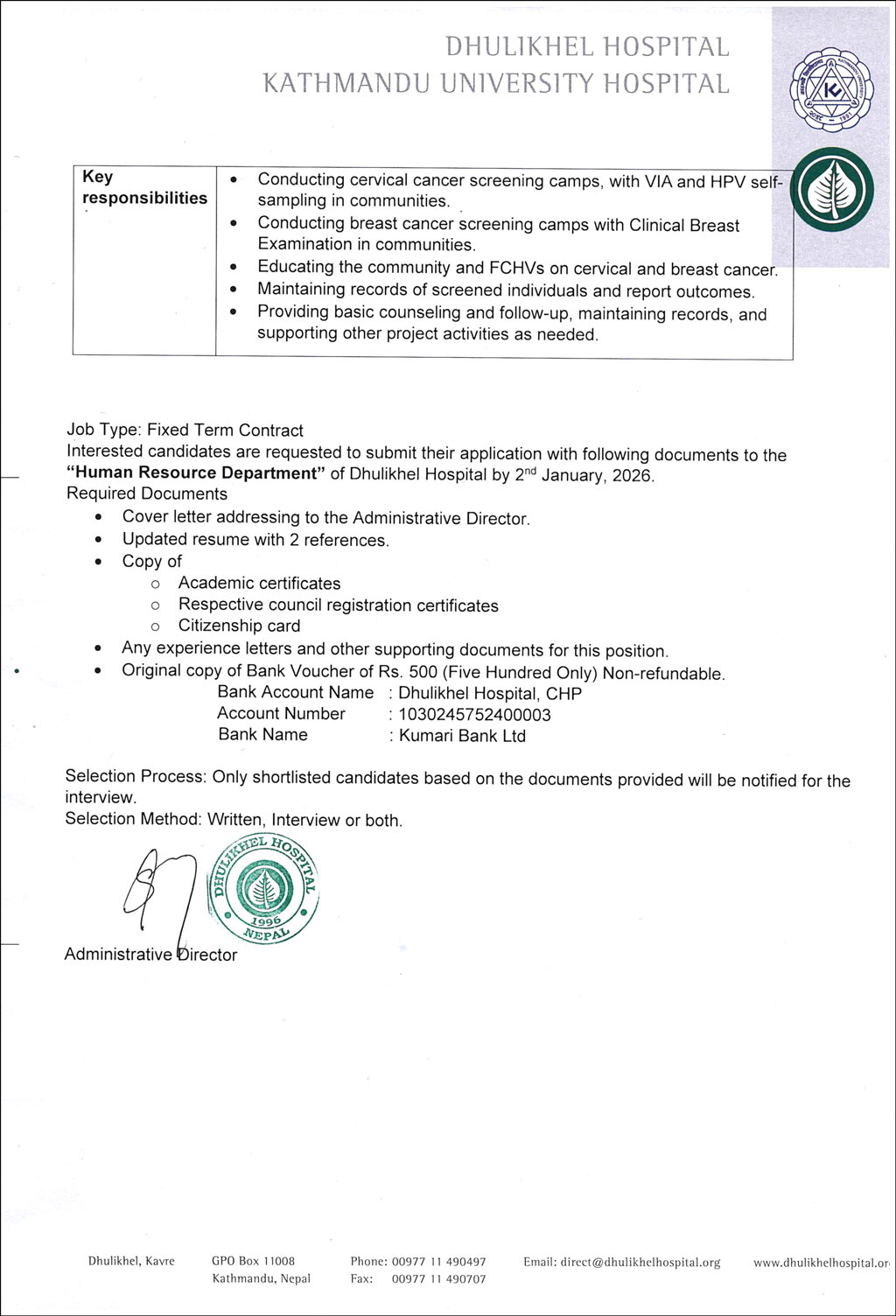 Vacancy Announcement For The Post Of Registrar in Gastroenterology and Clinical Genetics Department