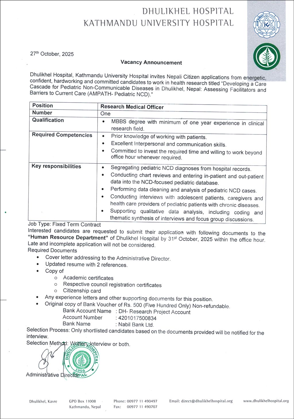 Vacancy Announcement For The Post Of Community Health Nurse (CHN)